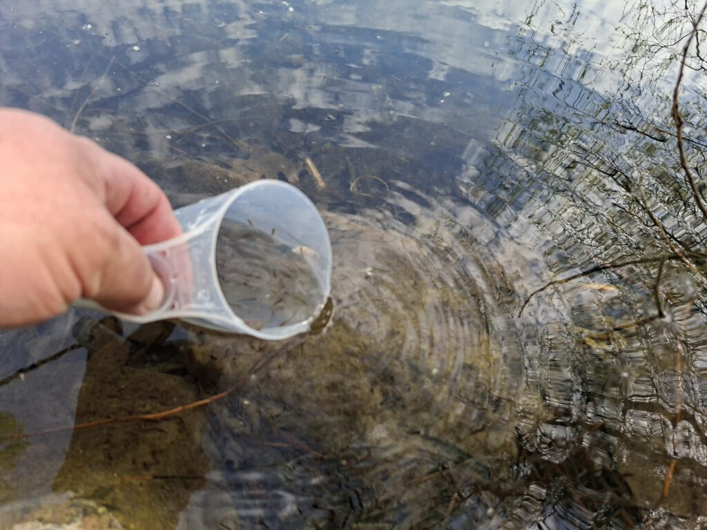 Die Wiederansiedlung und nachhaltige Stärkung ursprünglich heimischer Arten ist eine unserer bedeutendsten Aufgaben im Naturschutz. Durch gezielten Besatz sowie die Schaffung von Schongebieten und Laichplätzen sichern wir die Zukunft unserer Gewässer. In einer groß angelegten Aktion wurden deshalb am vergangenen Wochenende der Habichtsee, der Nesthauser See und der Waldsee mit insgesamt 100.000 Hechtlarven besetzt.